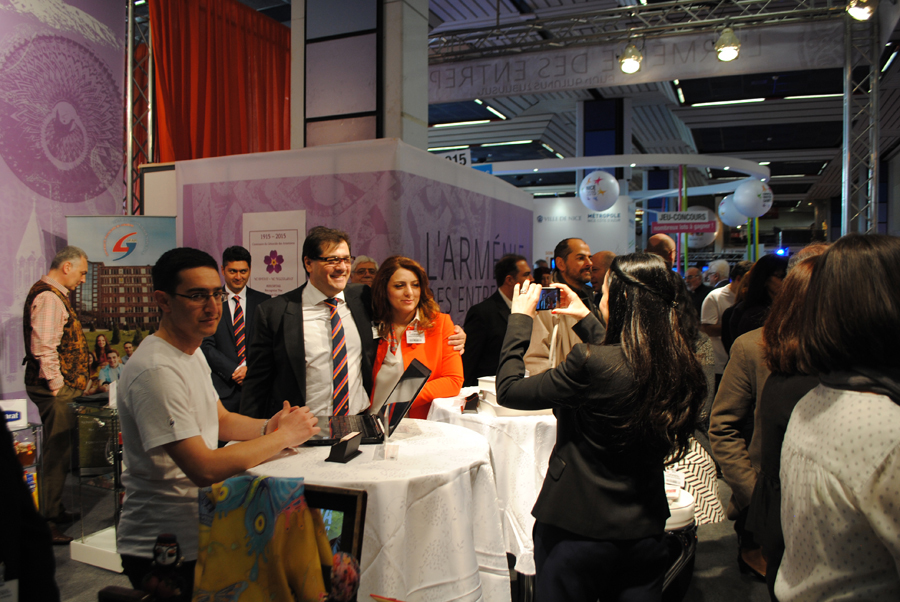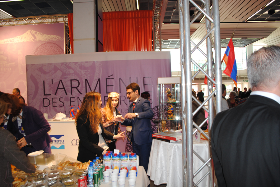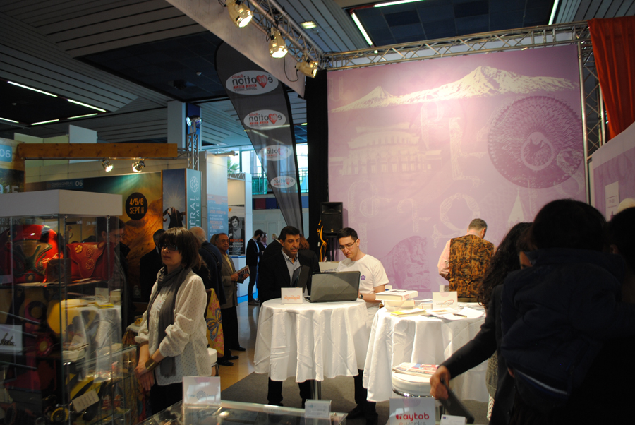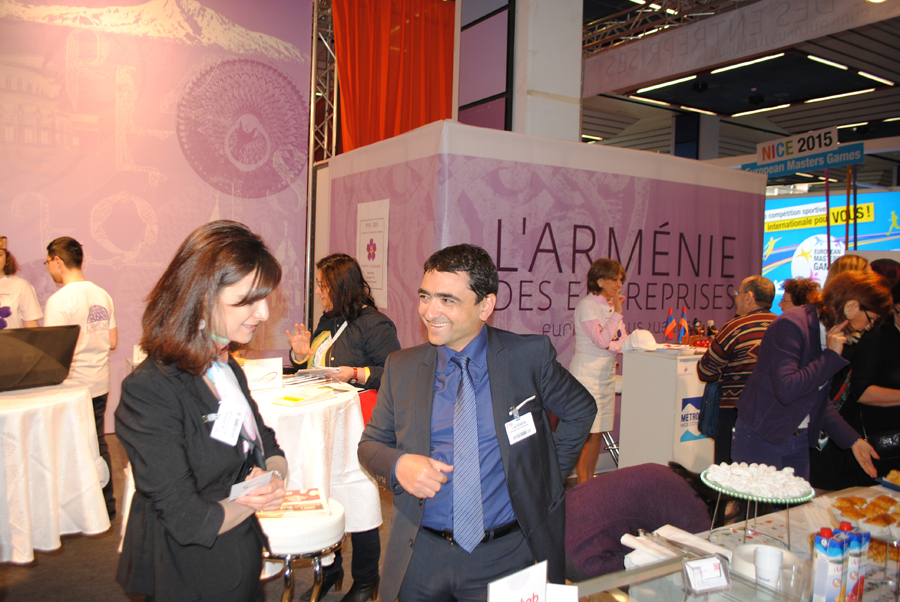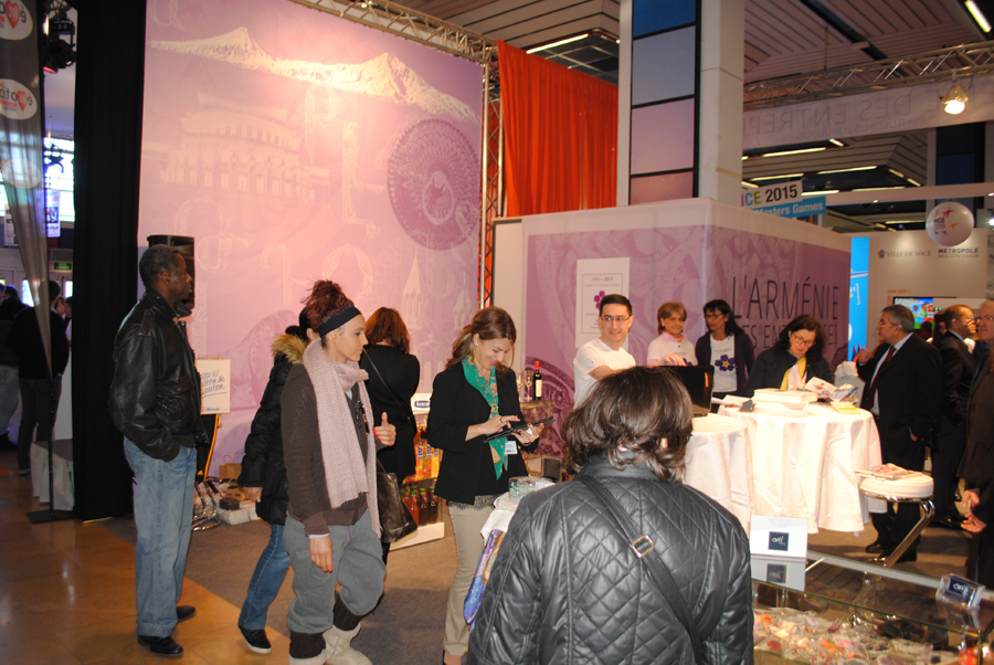 Après plusieurs mois de préparation, un magnifique stand de 45m2, intitulé » L’Arménie des Entreprises » se dressait fièrement à l’entrée du Palais des Expositions de Nice, bénéficiant ainsi d’une extraordinaire visibilité.